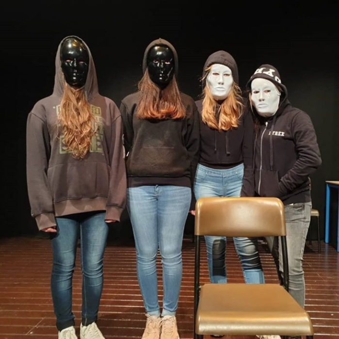 Ciao a tutti! Siamo Joana e Rossana, oggi vi parleremo del laboratorio di teatro della nostra scuola svolto durante il primo quadrimestre di quest’anno scolastico. Questo laboratorio consiste nel vincere le nostre paura ed esprimerci tramite un altro personaggio. Da questo corso abbiamo imparato come trasmettere le nostre emozioni al pubblico e come coinvolgerlo e tutto questo grazie agli insegnanti, che ci hanno supportato durante questo traguardo, Kleoniki e Giovanni.