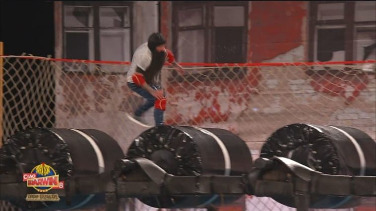 Il concorrente Gabriele Marchetti durante la registrazione della puntata di Ciao Darwin del 17 aprile 2019 cade dai rulli e picchiando la schiena rischia di rimanere in sedia a rotelle.